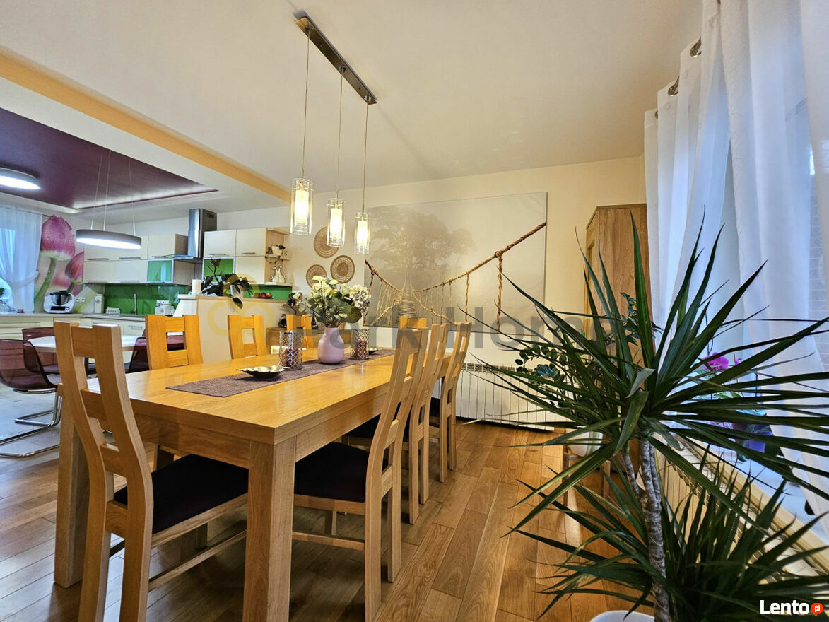 Duży, pięknie zadaszony taras (nowa drewniana pergola) to idealne miejsce do wypoczynku i na spotkania z przyjaciółmi. Nie brakuje również miejsca na aktywny wypoczynek dla dzieci - plac zabaw oraz boisko do gry w siatkówkę.